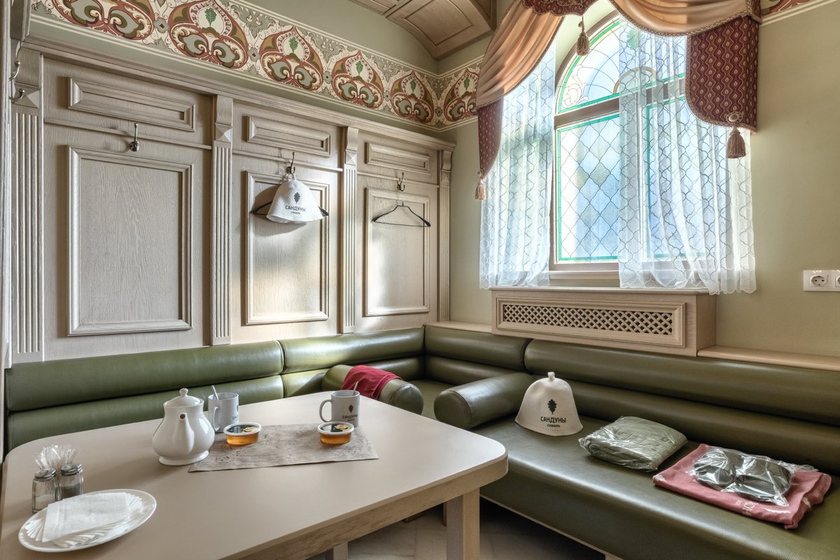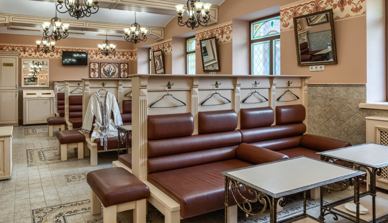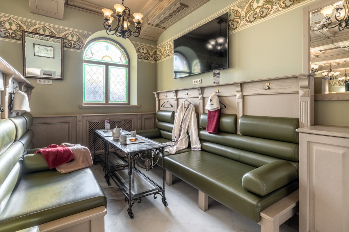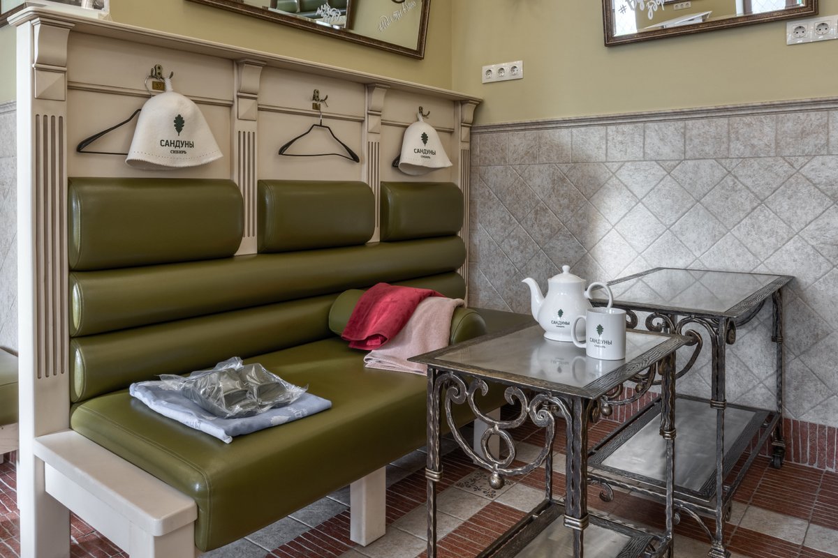 Не хочется в бассейн? Не проблема! Вместо этого можно посидеть в нашей комнате отдыха. Мы постарались создать здесь комфортный, стильный интерьер из максимально натуральных, экологичных материалов, выбрать мебель, которая будет одновременно удобной и красивой. Надеемся, что вам понравится! Также у нас работает бар, где вы можете заказать блюда русской кухни. Только не забывайте, что плотная трапеза непосредственно перед посещением парной - это не самая хорошая идея, согласно мнению врачей. А вот после парной она совсем не повредит!